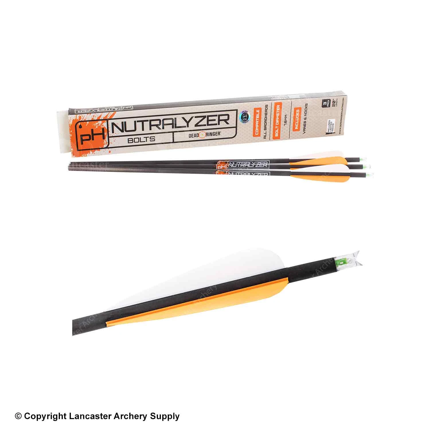 Dead Ringer has knocked it out of the park again with their Nutralyzer Crossbow Bolts. Complete with lighted nocks and vanes, all you need to do is add your broadhead and youโre ready to go. Pre-cut to 20โ each bolt weighs 325.6 grains, perfect for hunting!